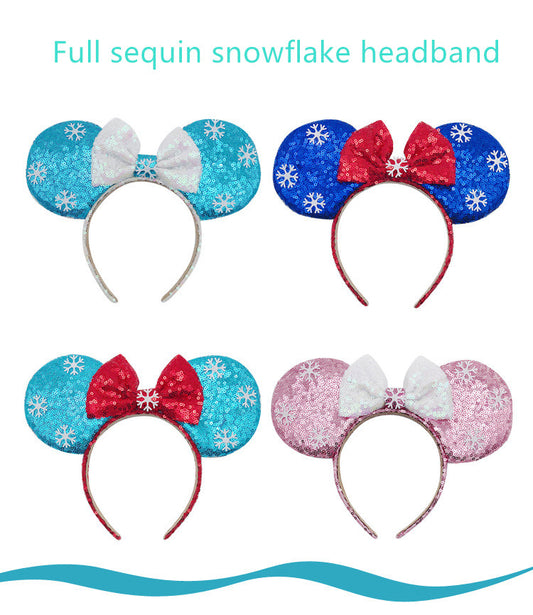 Christmas Mouse Ear Headband, Sequin Festive Holiday Hair Accessory, One Size Fits Most