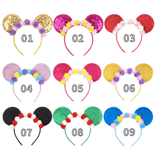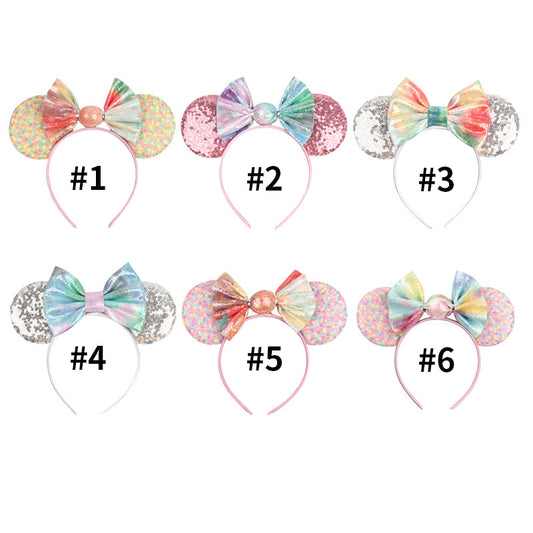 Mermaid Hair Bows Minnie Mouse Ear Hairband for Girls Big Sequins Ears Chic DIY Kids Hair Accessories Headband